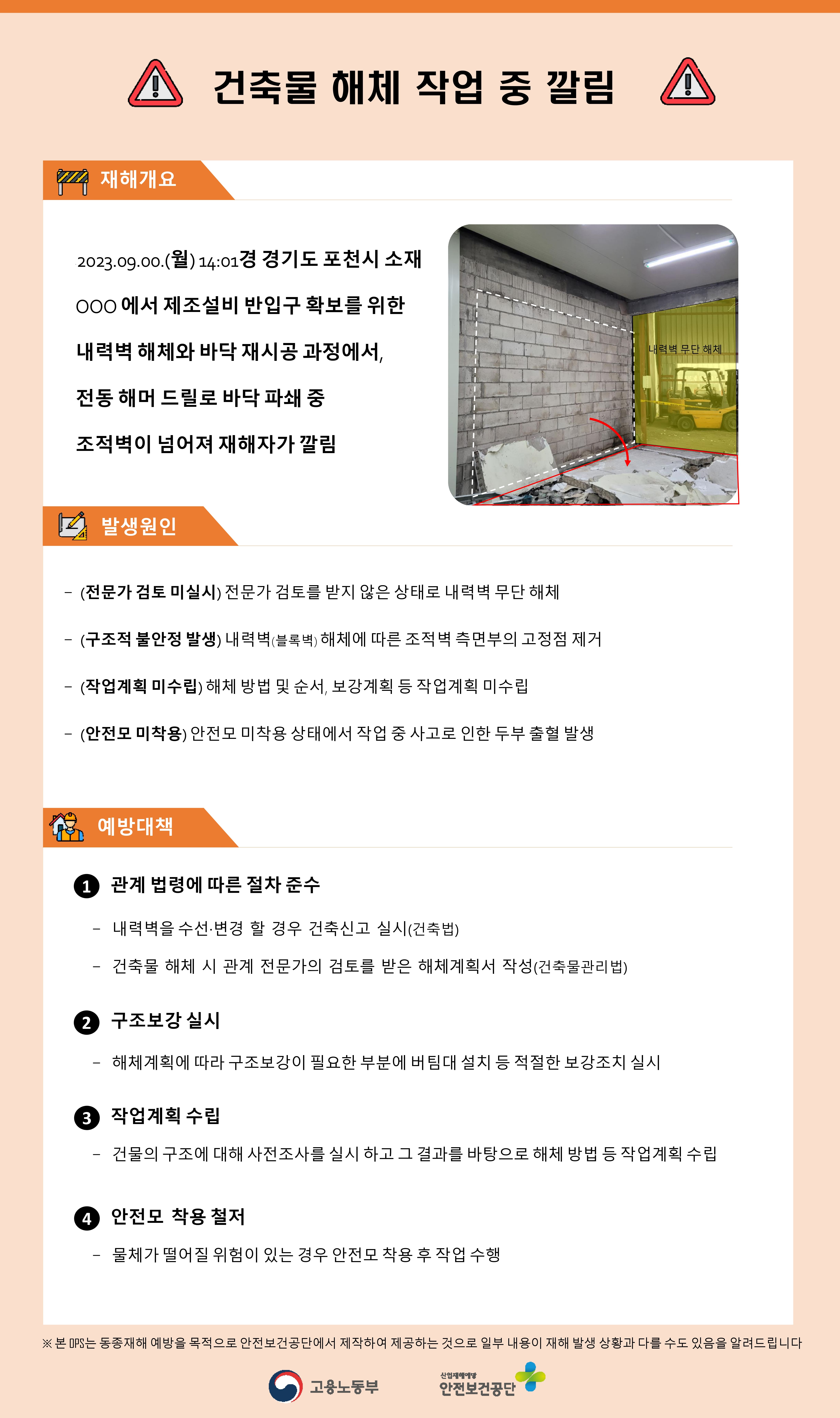 건설업 재해사례 - 건축물 해체 작업 중 깔림