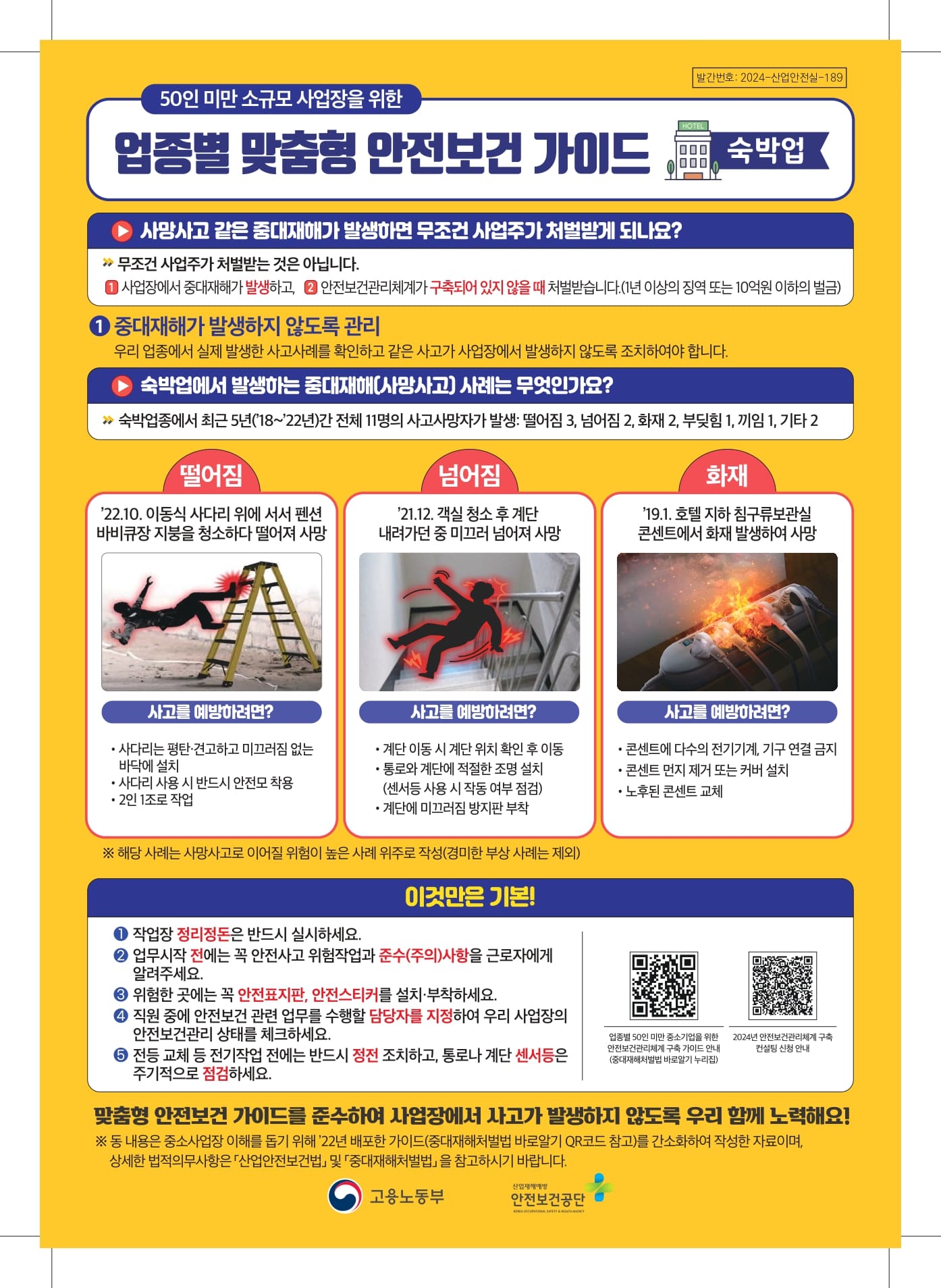 업종별 맞춤형 안전보건가이드 OPS(숙박업, 음식점업, 경비·청소, 벌목업)