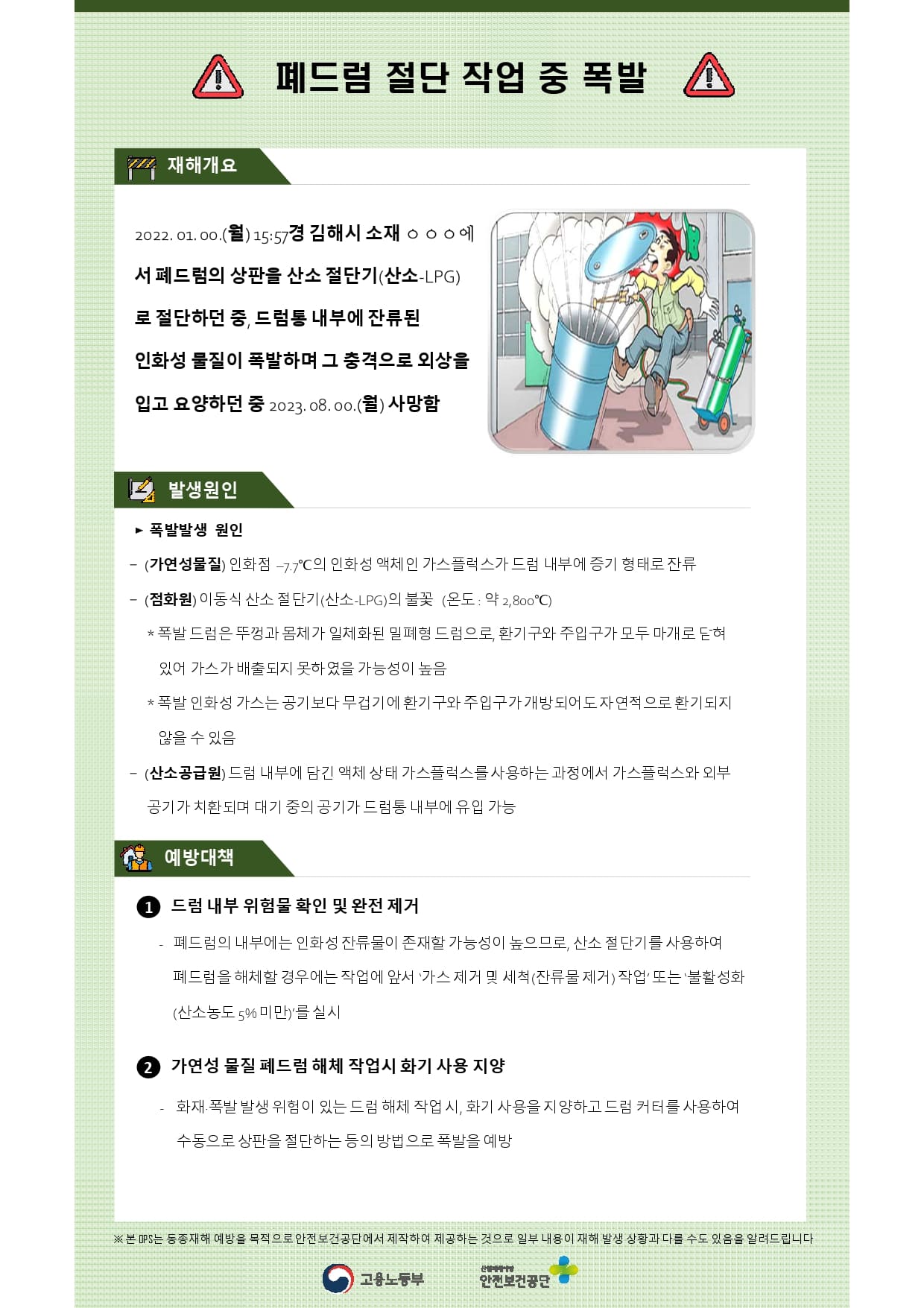 제조업 재해사례 - 폐드럼 절단작업중 폭발