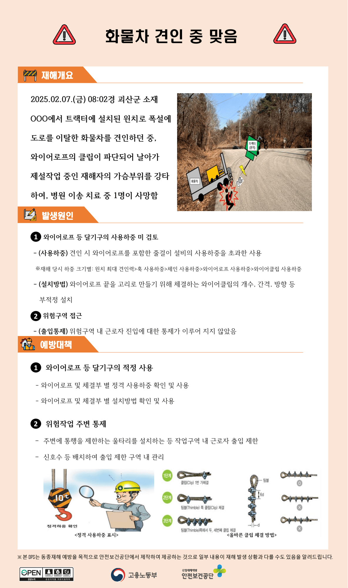 서비스업 재해사례 - 화물차 견인 중 물체에 맞음