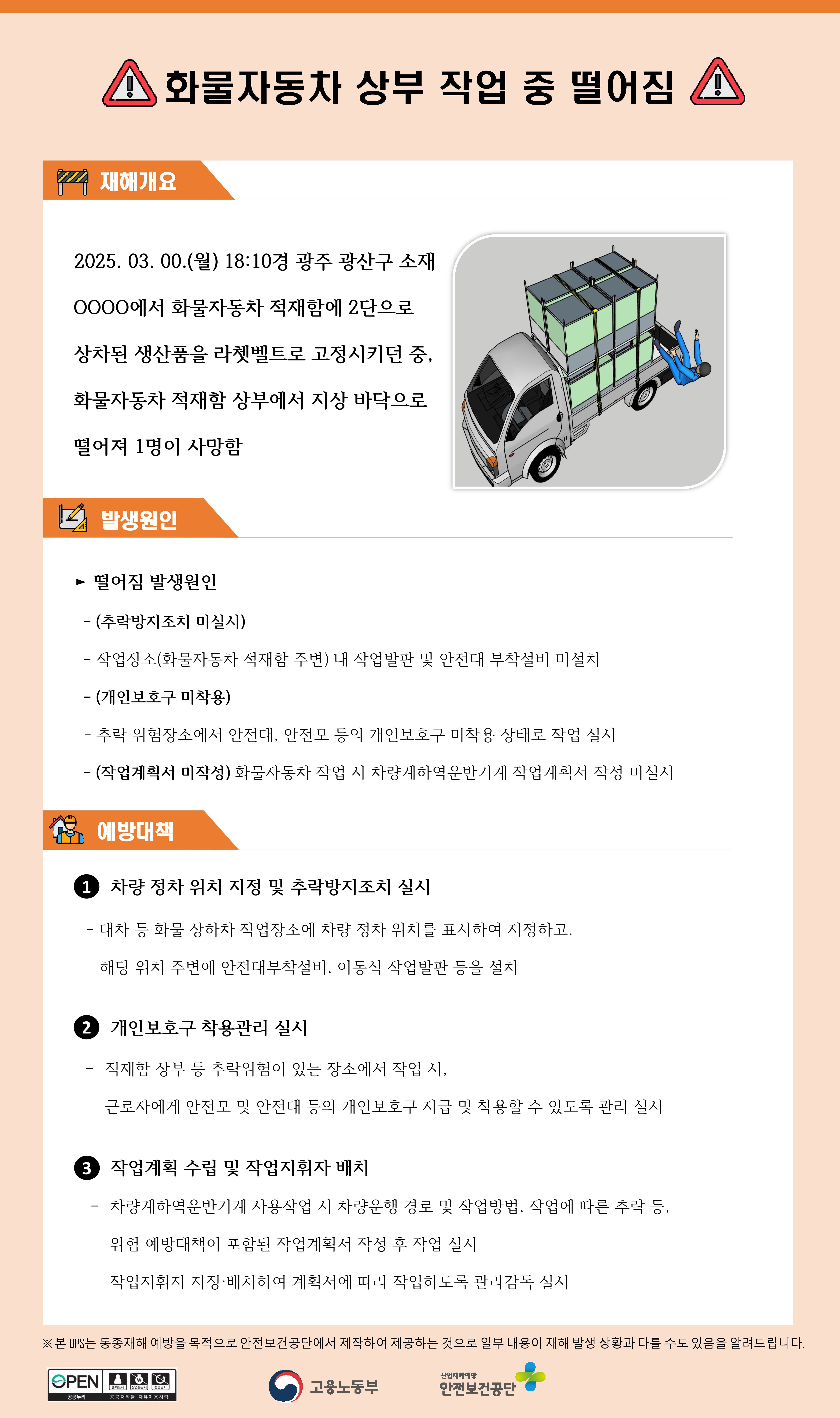 제조업 재해사례 - 화물 자동차 상부 작업 중 떨어짐