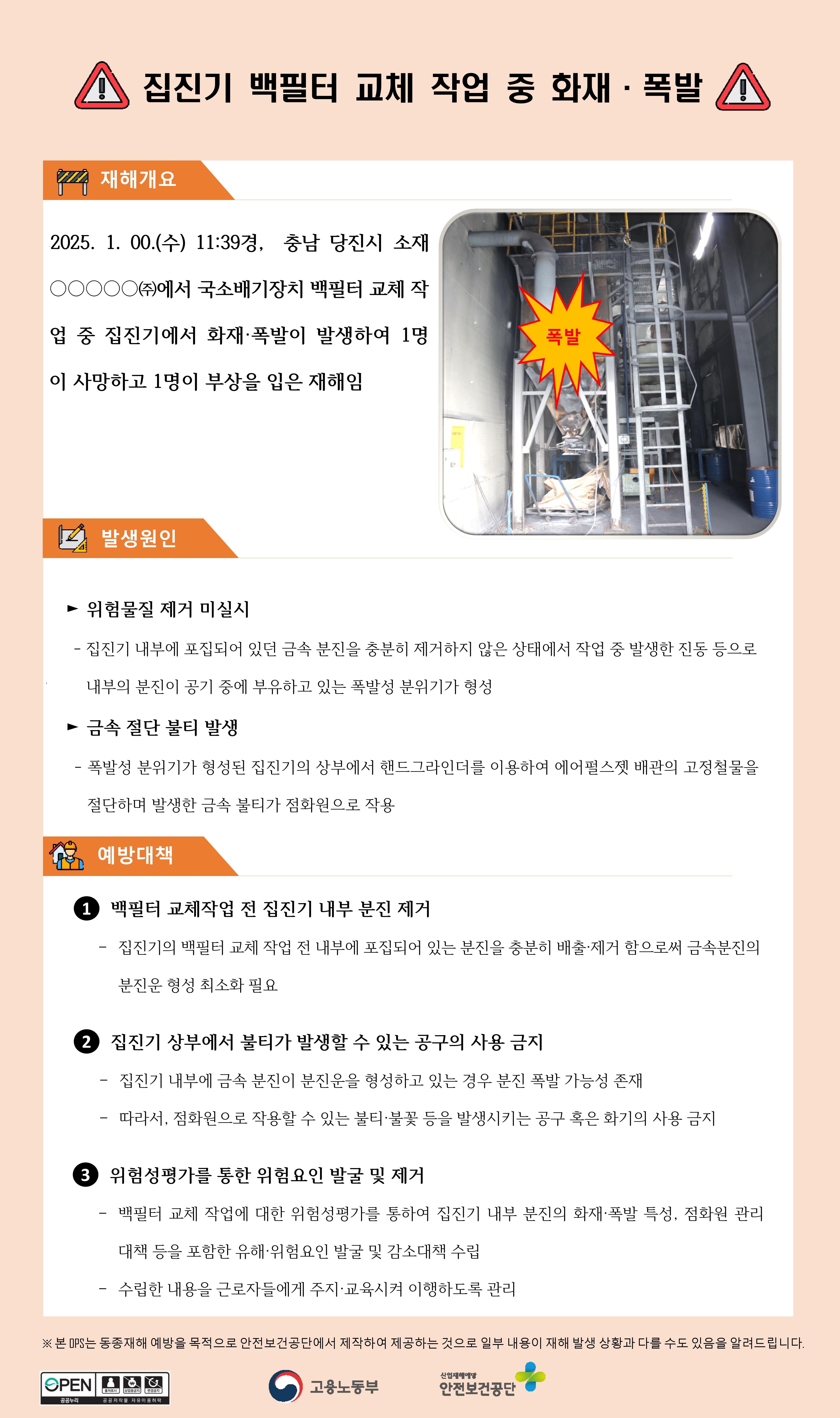 제조업 재해사례 - 집진기 백필터 교체 작업 중 화재 폭발