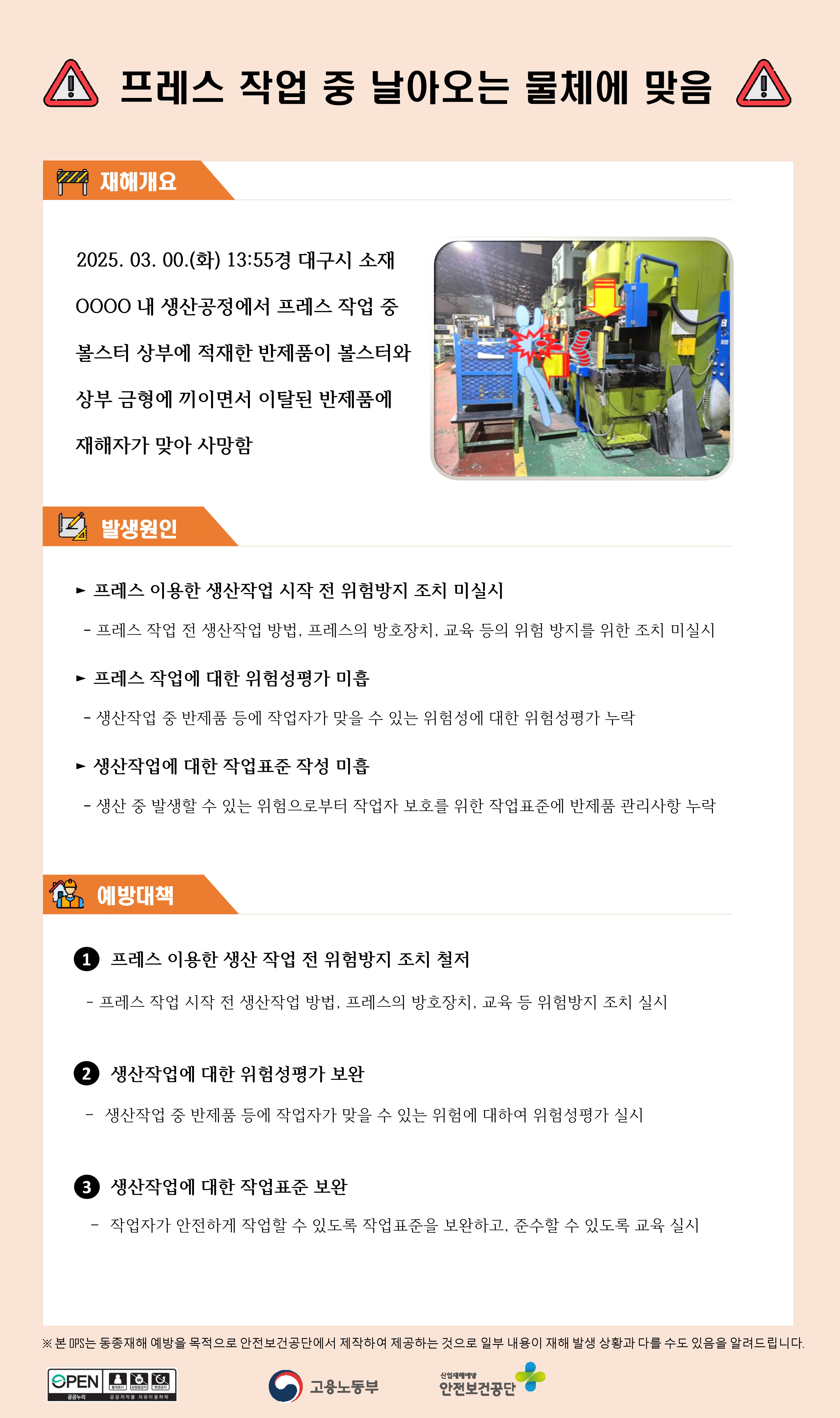 제조업 재해사례 - 프레스 작업 중 날아오는 물체에 맞음