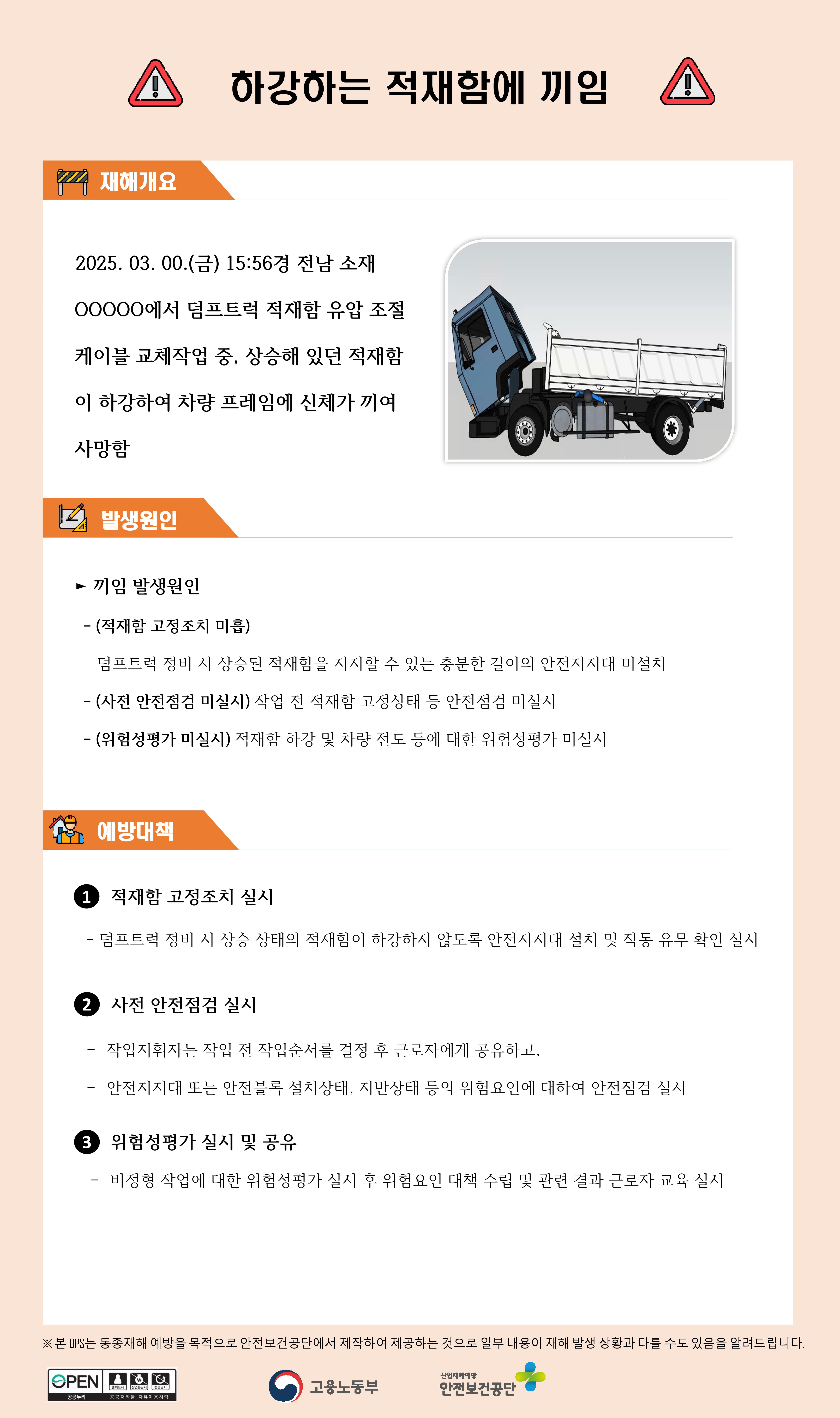 건설업 재해사례 - 하강하는 적재함에 끼임