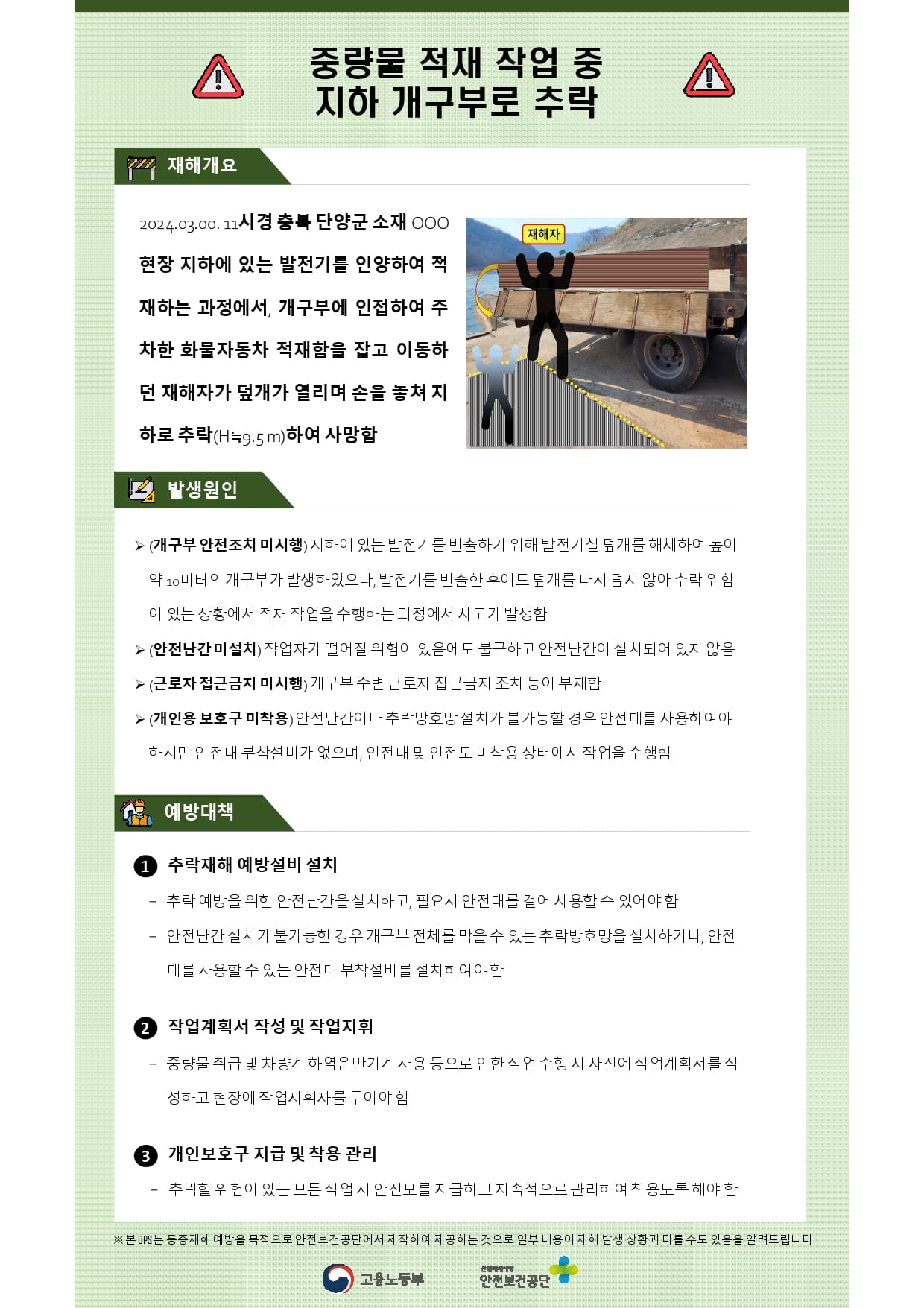 제조업 재해사례 - 중량물적재작업중추락