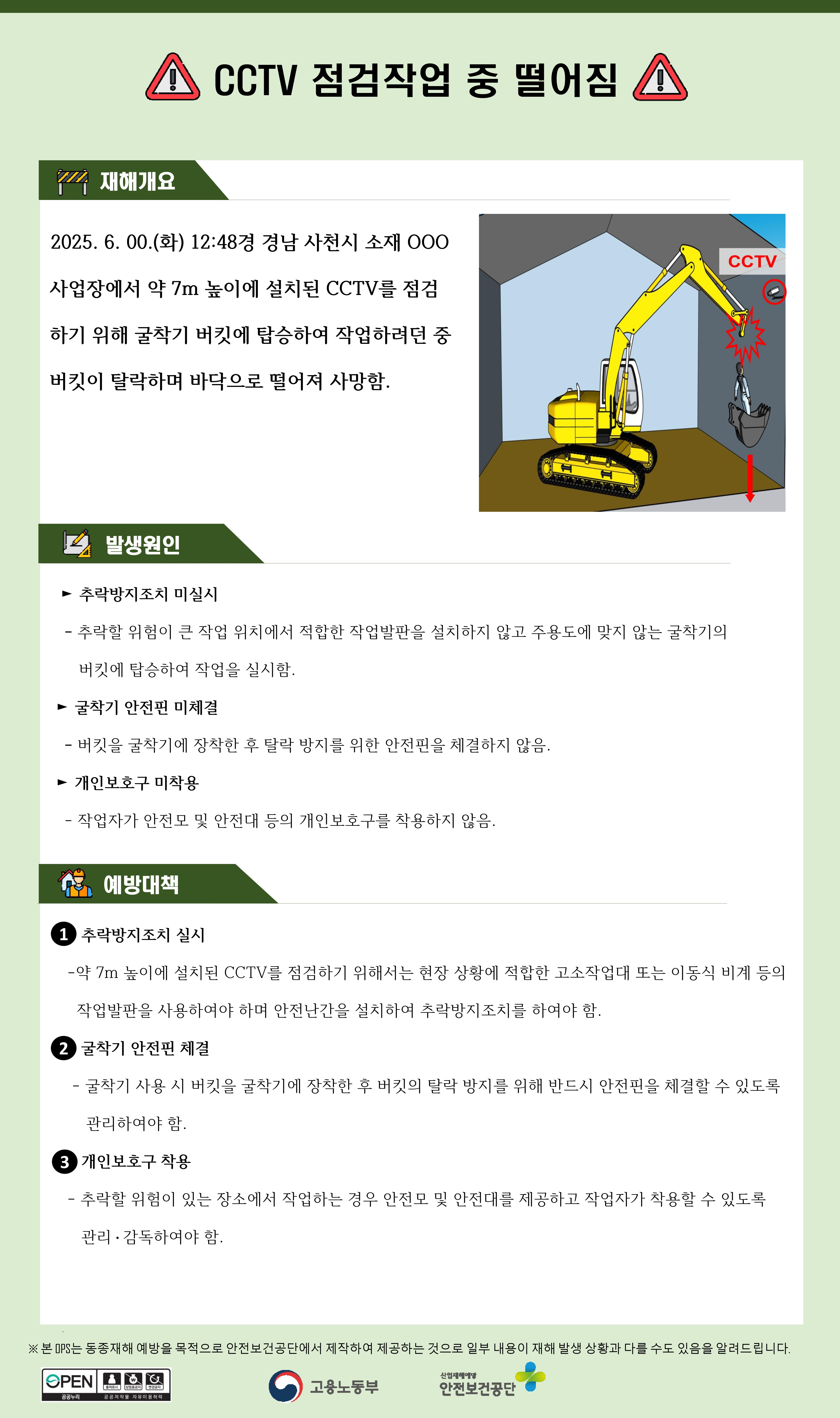 건설업 재해사례 - CCTV 점검 작업 중 떨어짐