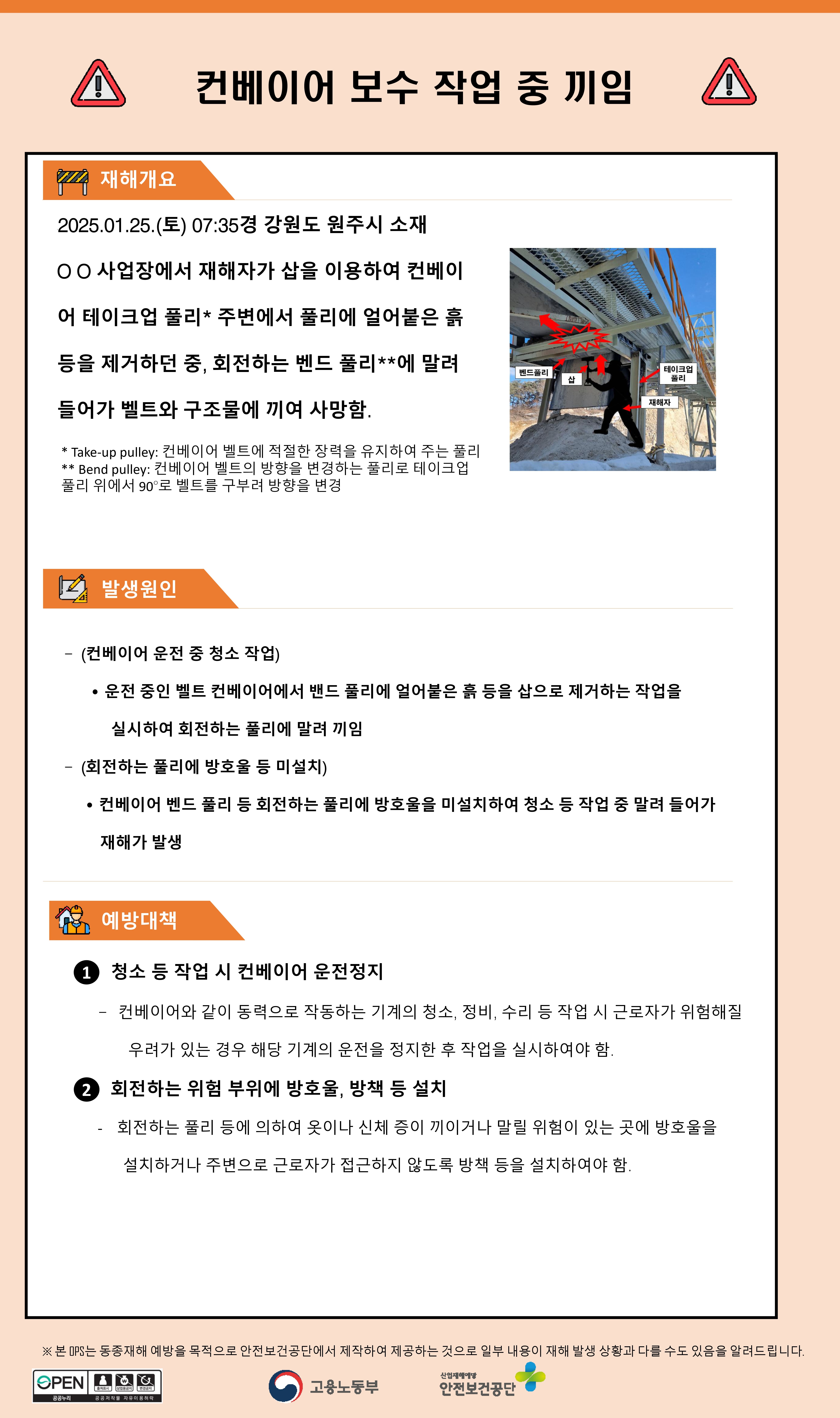 제조업 재해사례 - 컨베이어 보수작업 중 끼임
