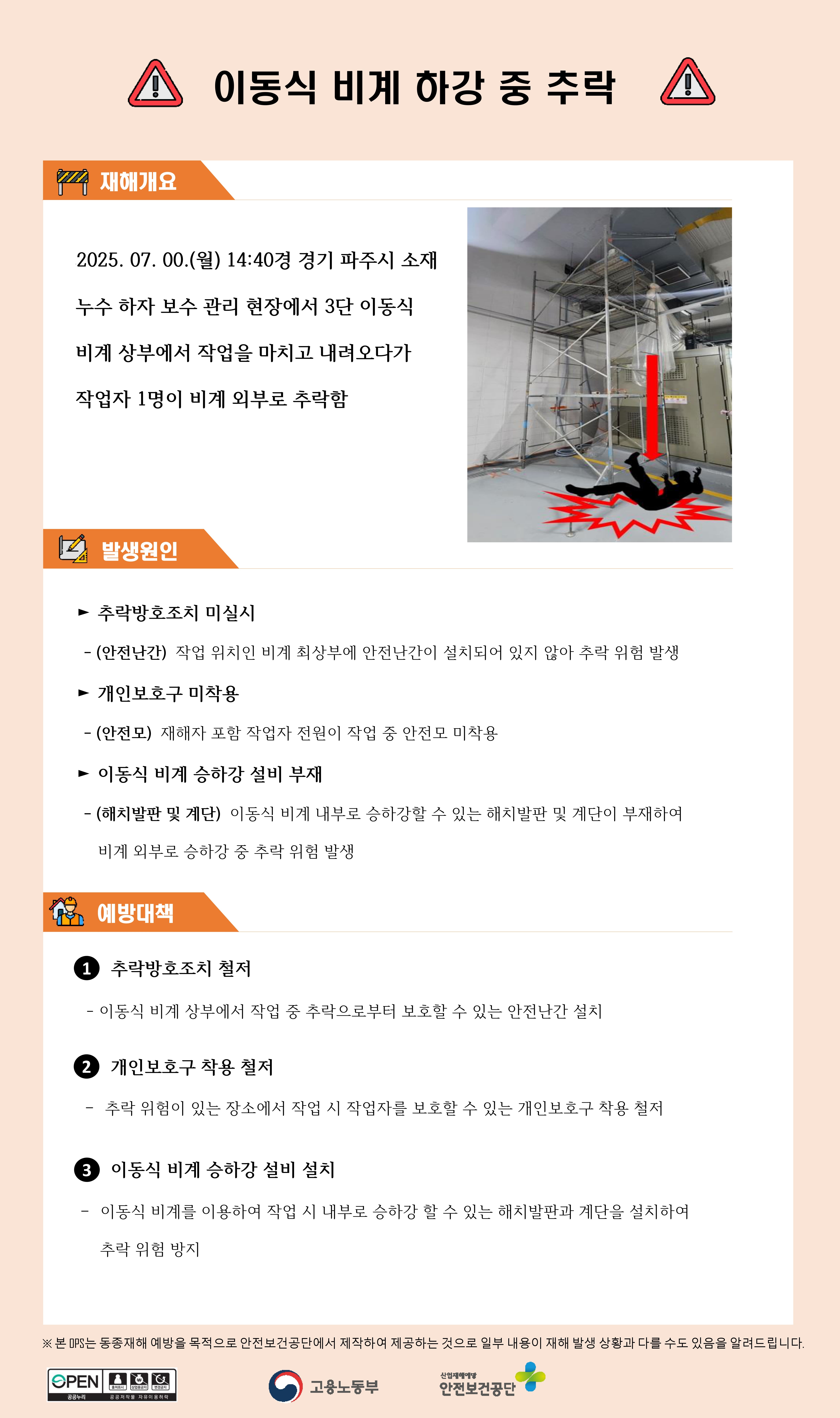 건설업 재해사례 - 이동식 비계 하강 중 추락