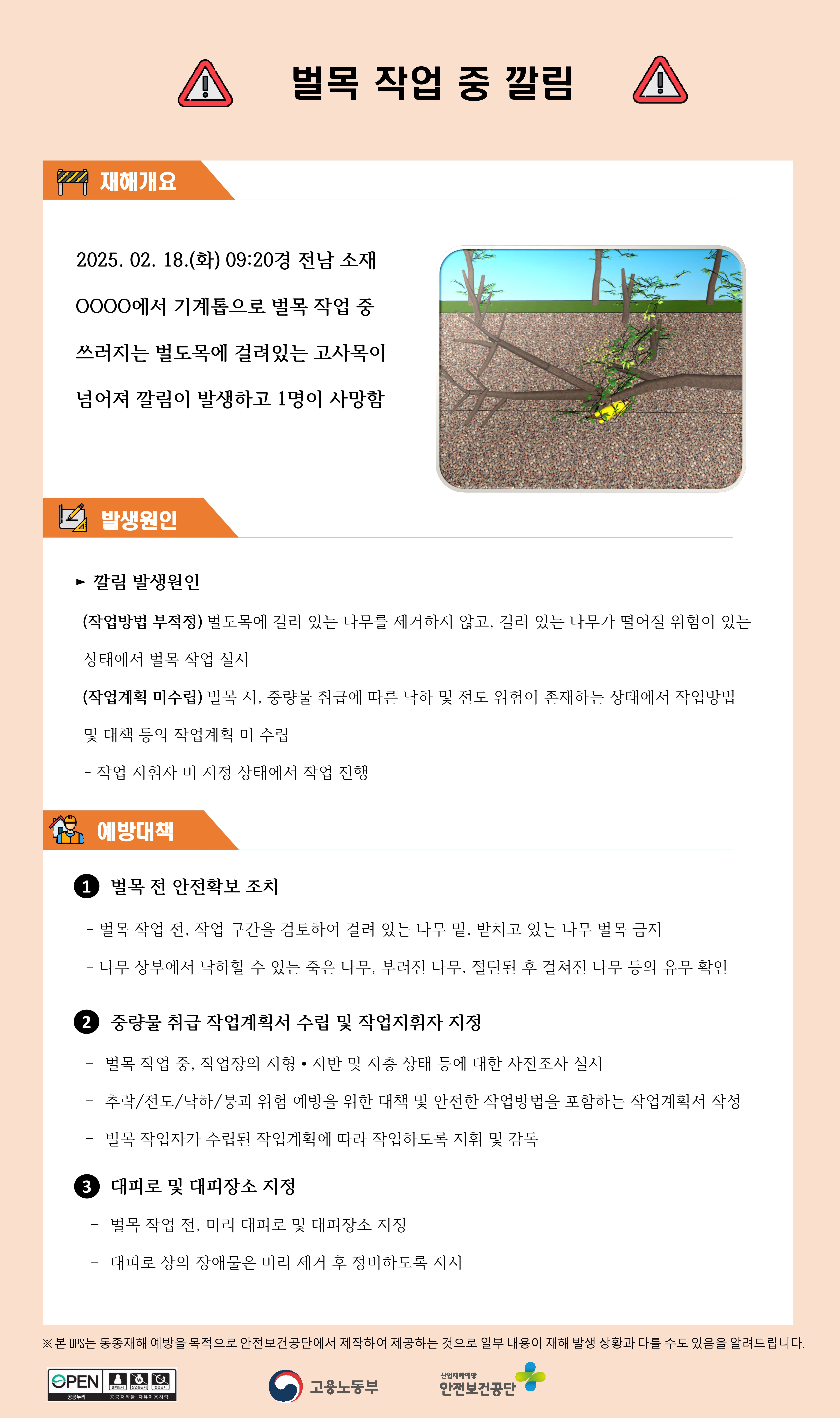 서비스업 재해사례 - 벌목 작업 중 깔림