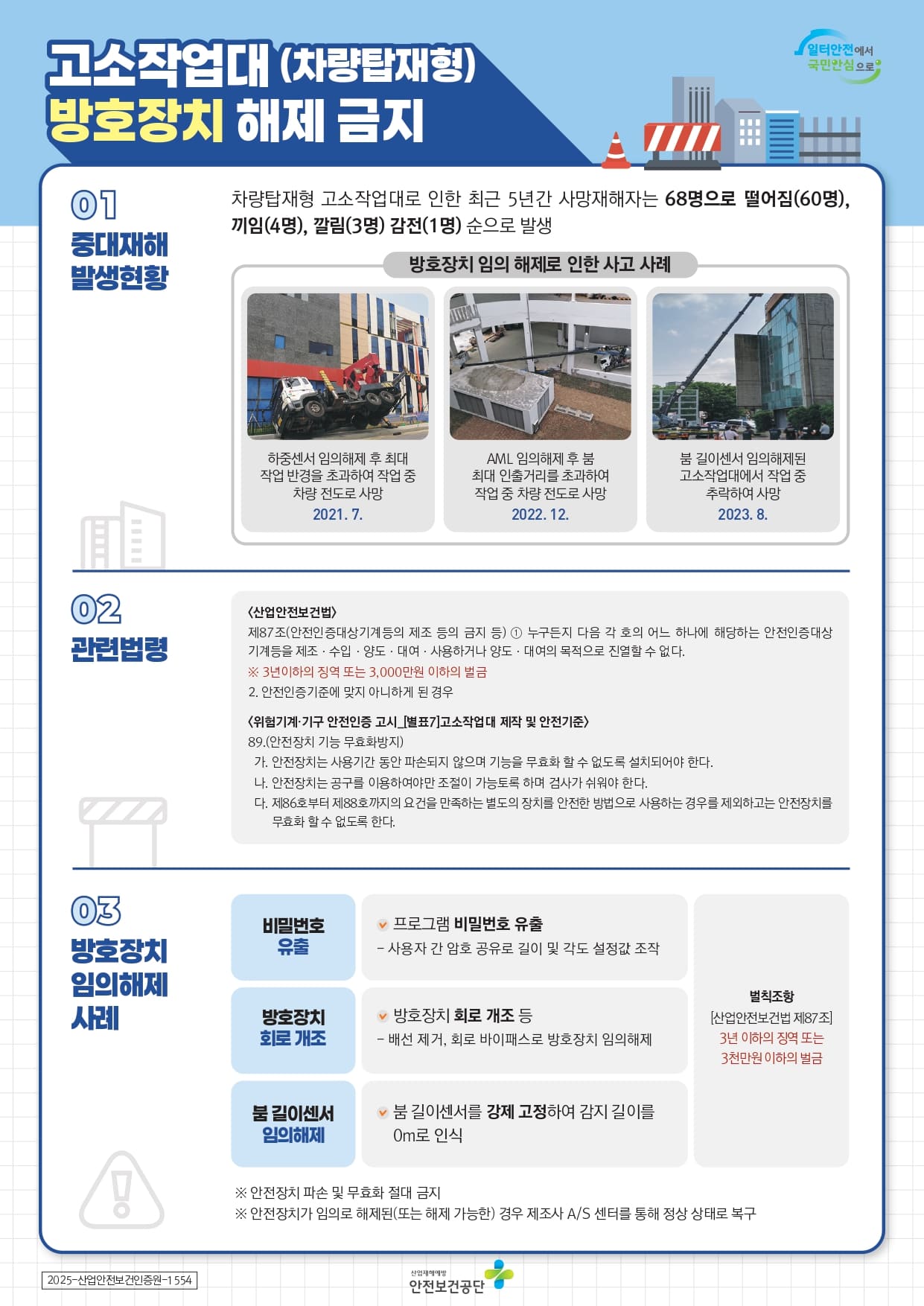 차량탑재형 고소작업대 안전장치 해제 금지 OPS