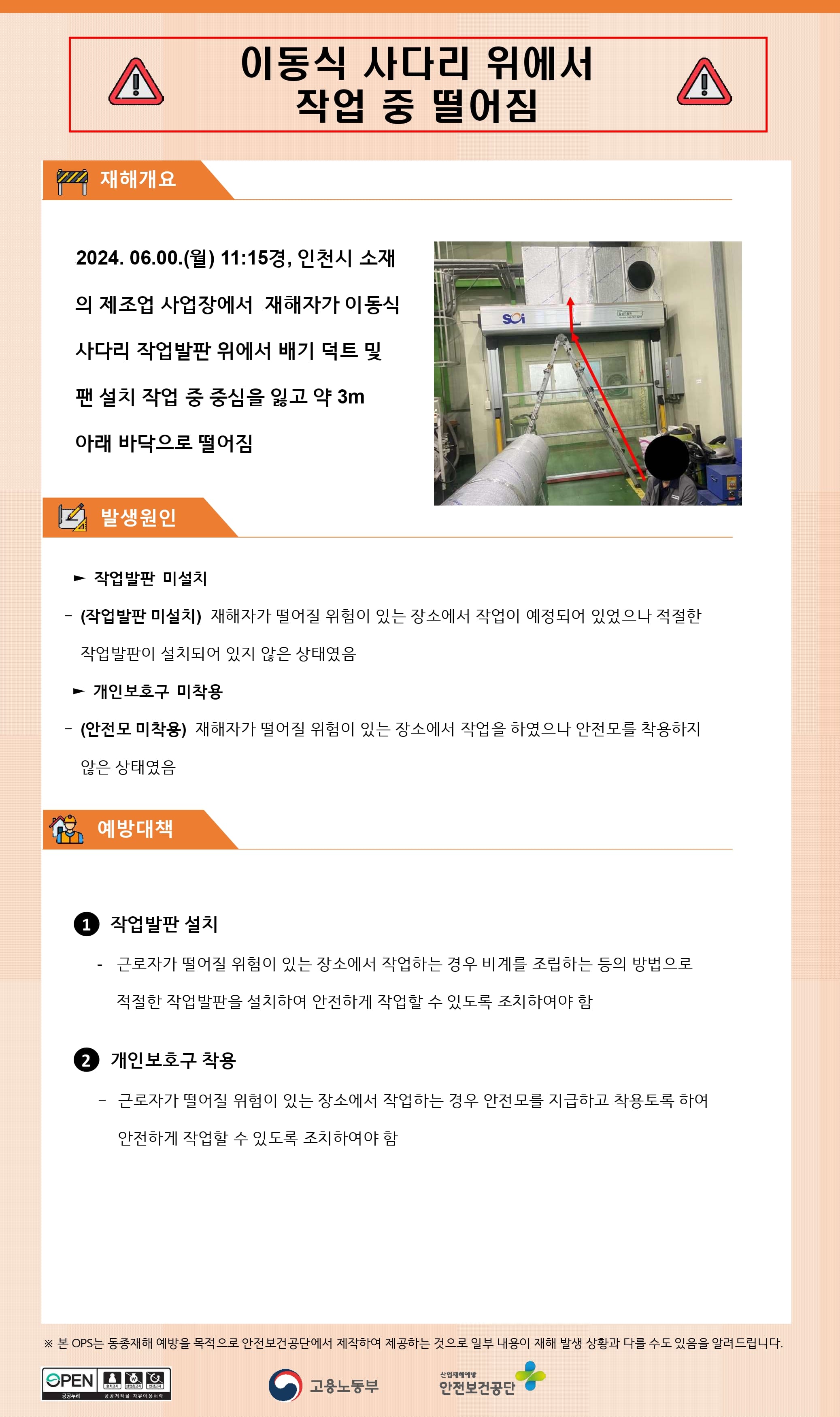 제조업 재해사례 - 이동식 사다리 위에서 작업중 떨어짐