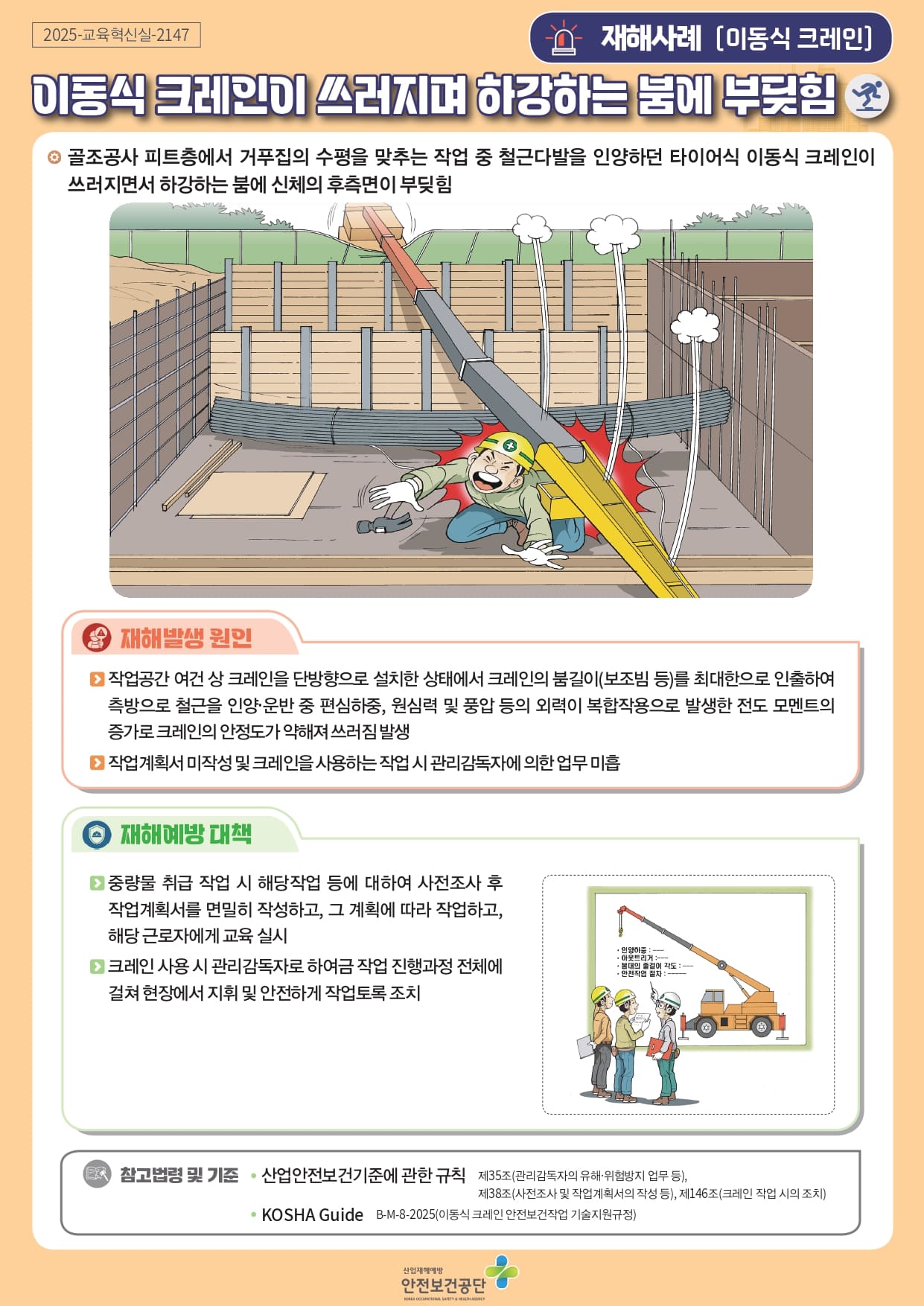 [중대재해] 이동식 크레인이 쓰러지며 하강하는 붐에 부딪힘