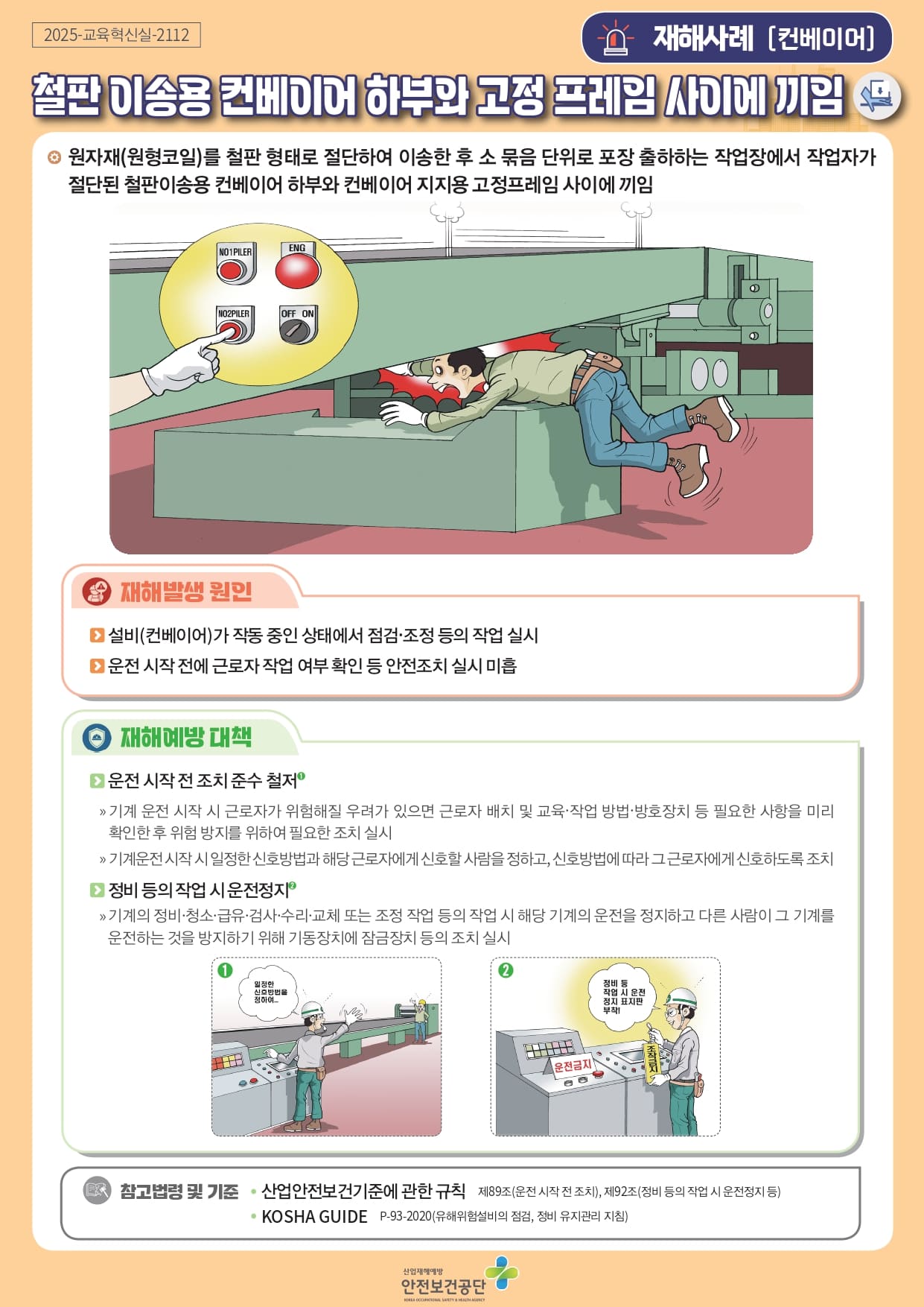 [중대재해] 철판 이송용 컨베이어 하부와 고정 프레임 사이에 끼임