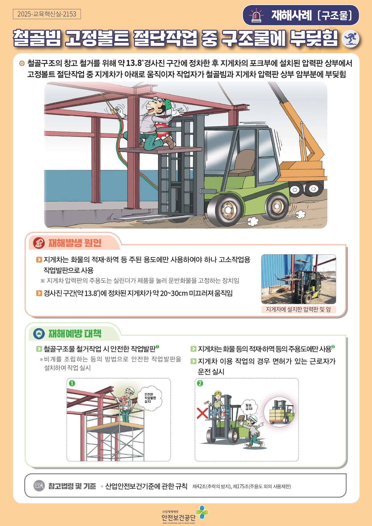 [중대재해] 철골 빔 고정볼트 절단 작업 중 구조물에 부딪힘