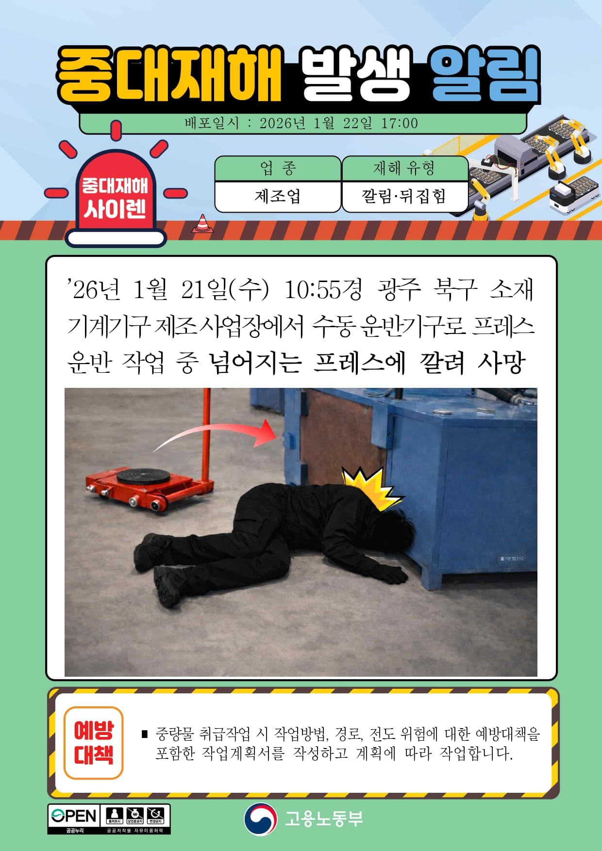 중대재해 발생 알림(5) - 제조업