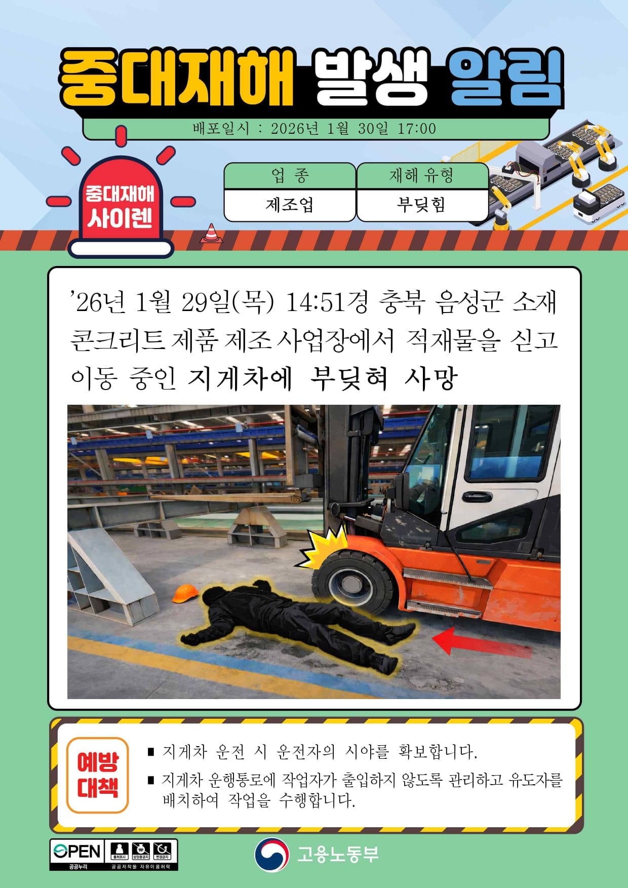 중대재해 발생 알림(8) - 제조업